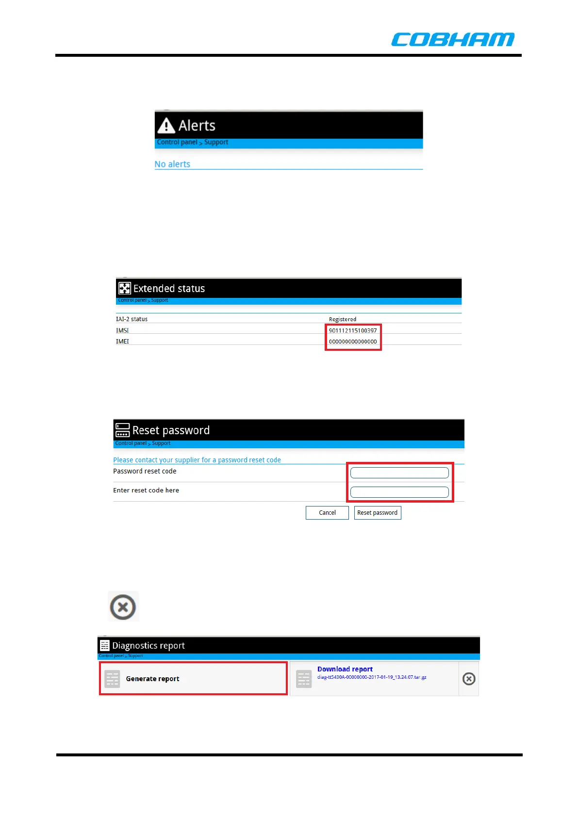 The terminal can generate a diagnostic report for use by the supplier when debugging issues. First select the