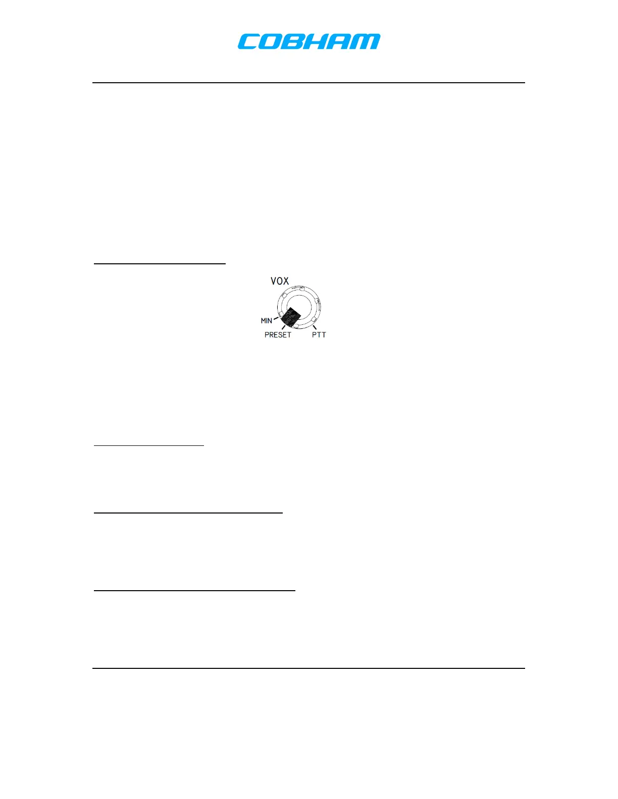 When the VOX control is set fully ccw to the MIN (minimum) position the intercom audio