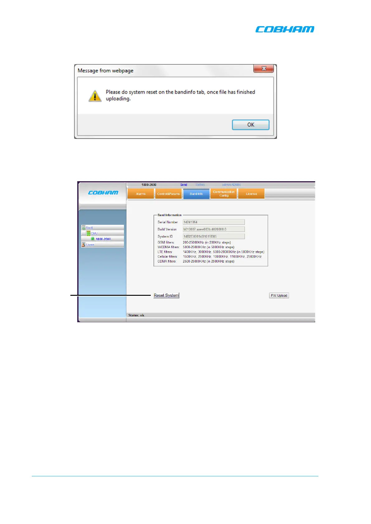 5. Select the Band Info tab and click Reset System. The repeater will reset and the relevant