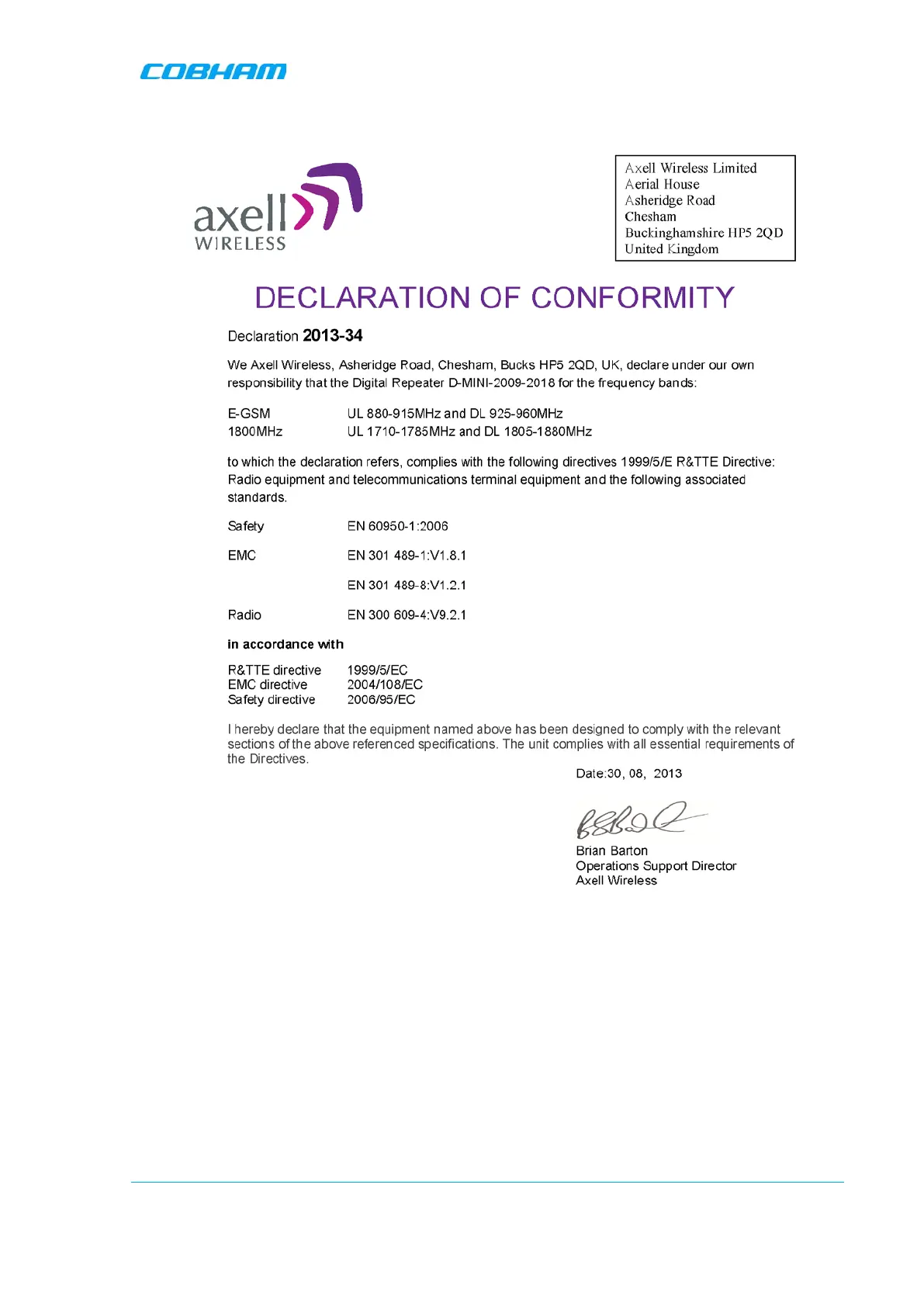Cobham Wireless Coverage Date: 11-Oct-15 www.cobham.com/wireless