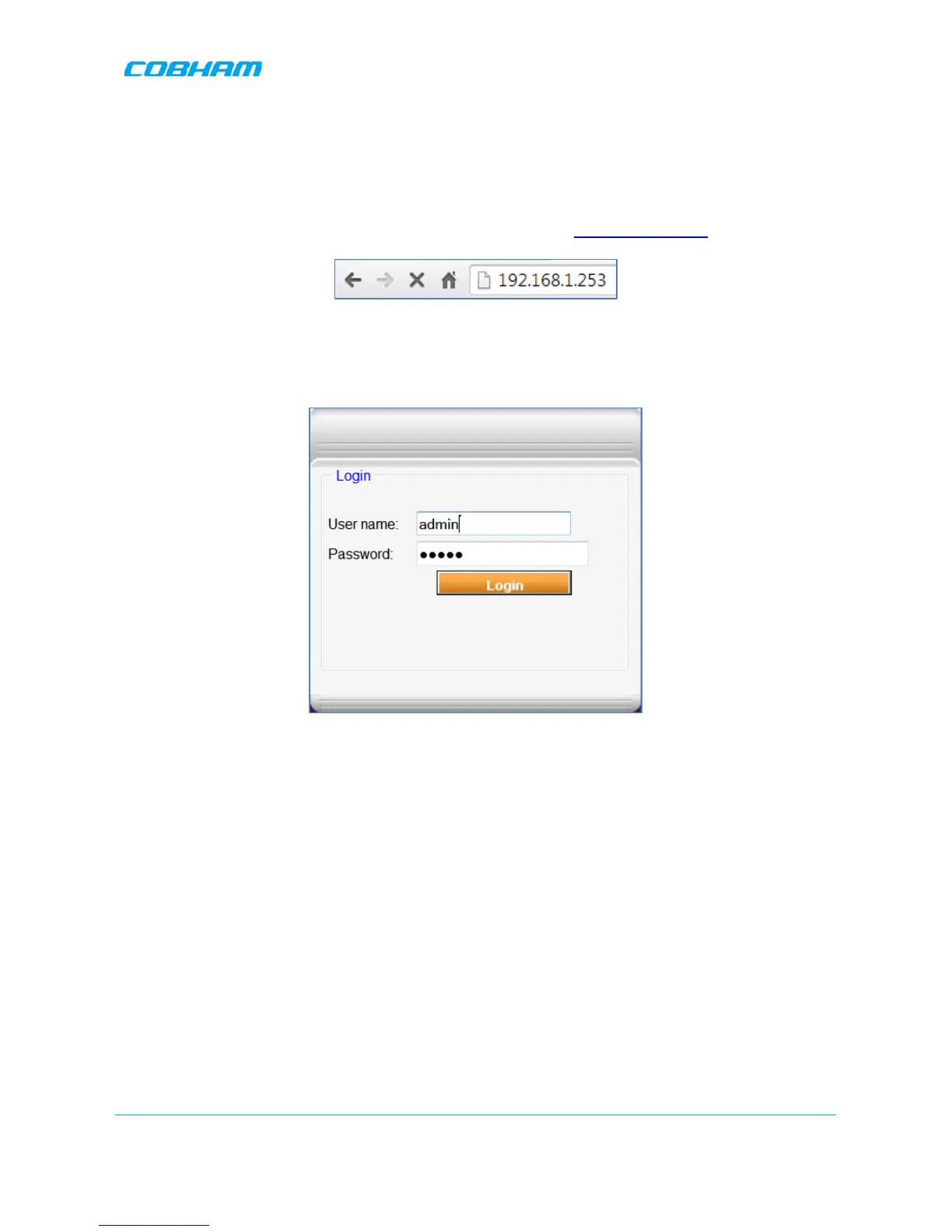 3. Type the default User Name admin and the default Password admin.