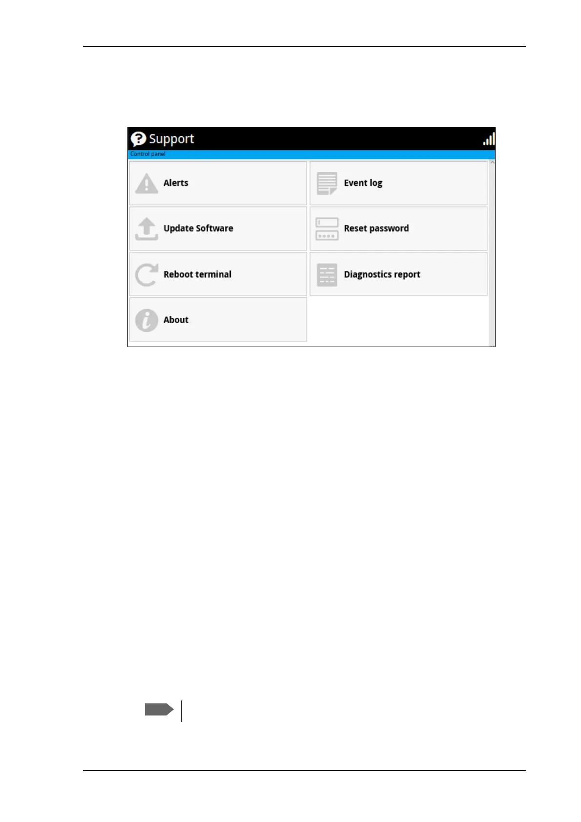 To open the Support page, select (Control panel) > Support.