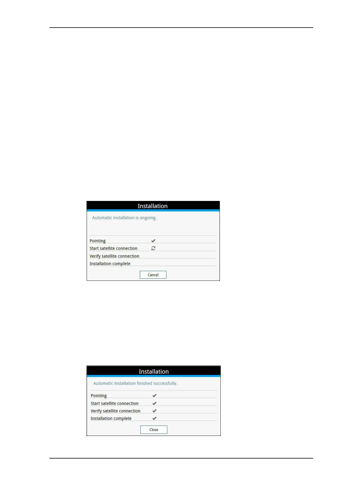 For details, see Installation process for satellite operation on page 12.