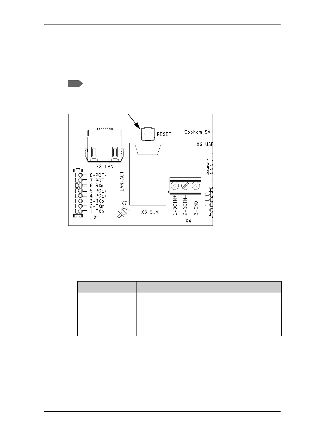 The Reset button is located inside the interface enclosure at the back of the terminal and can