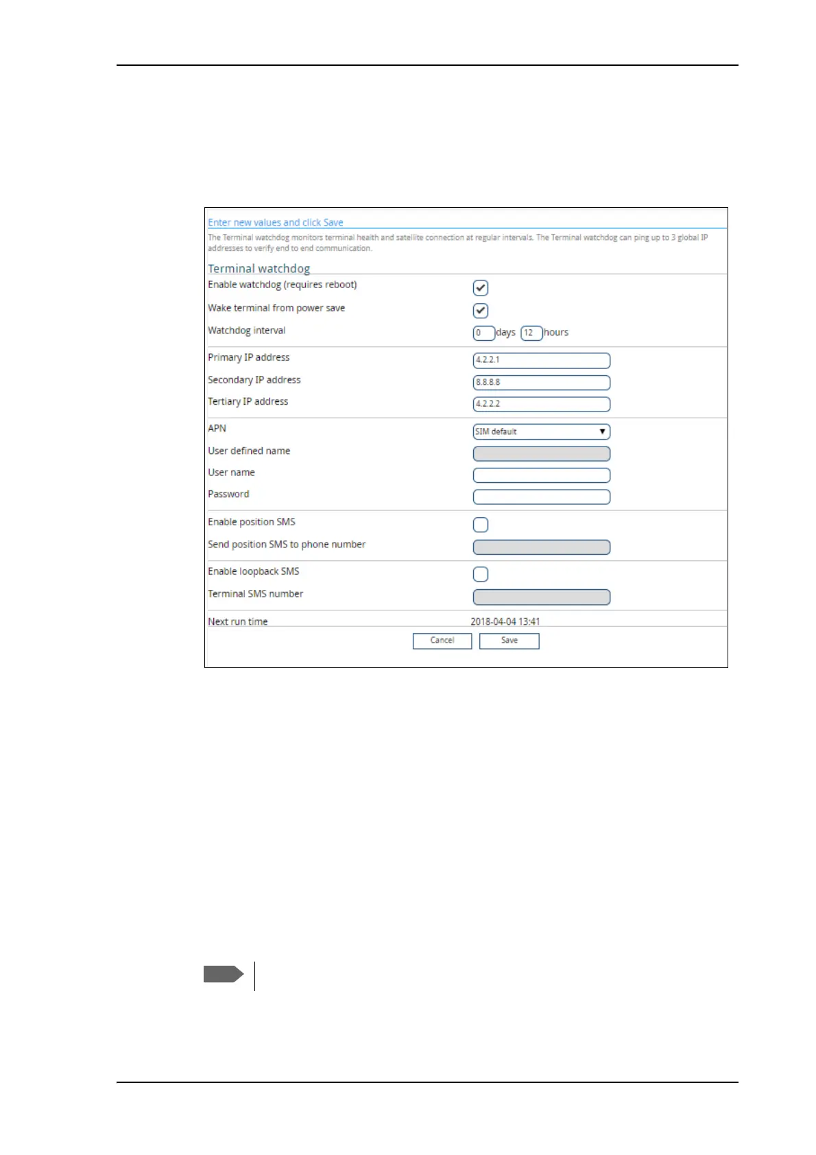 6. Enter the APN (and user name and password if required) to use for the data connection.