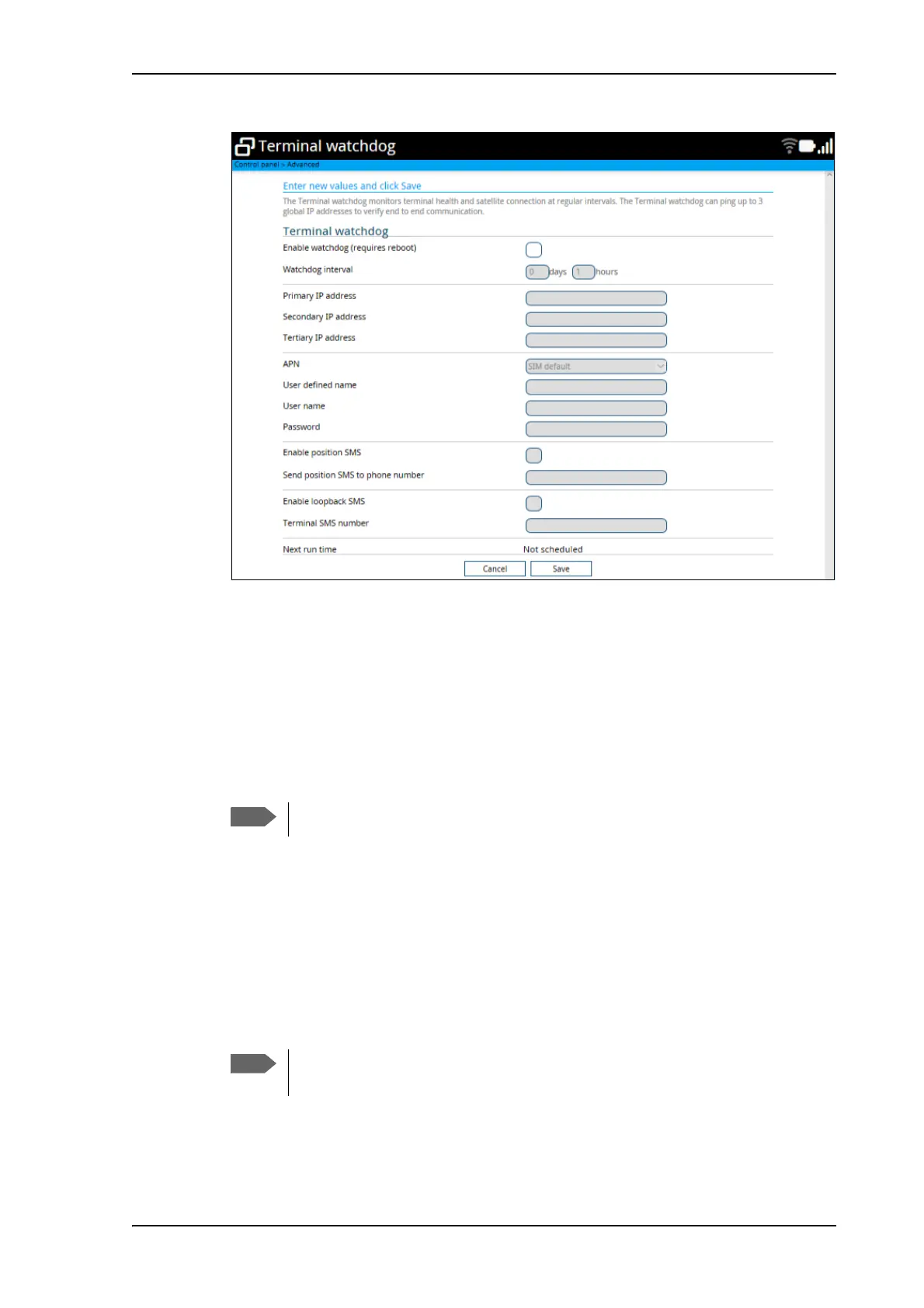 Next run time: This field at the bottom of the page shows what time the Terminal watchdog