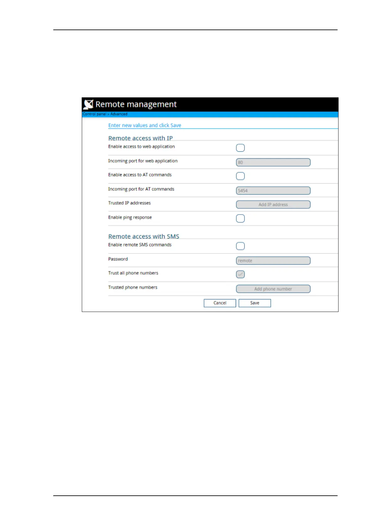 To set up the terminal for remote management, select Advanced > Remote management