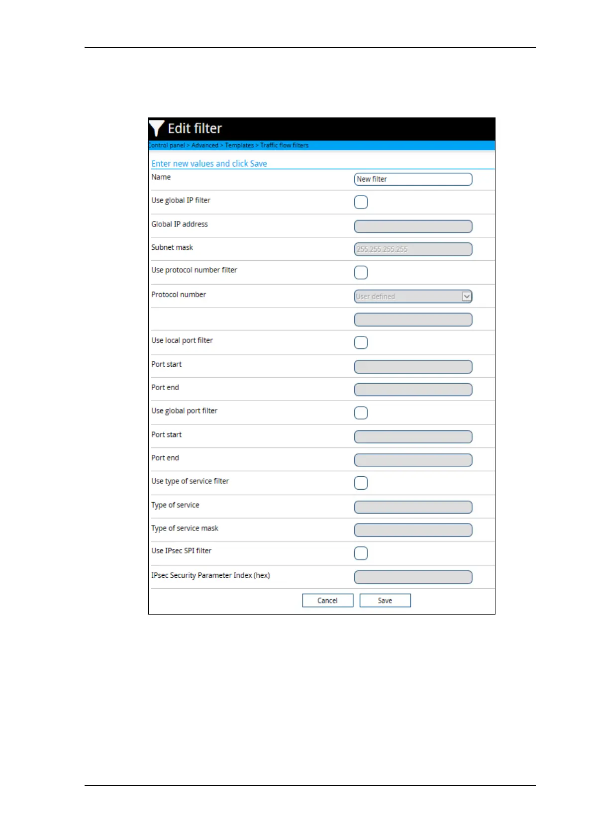 4. To add a new traffic flow filter, click Add template and proceed with the next steps.
