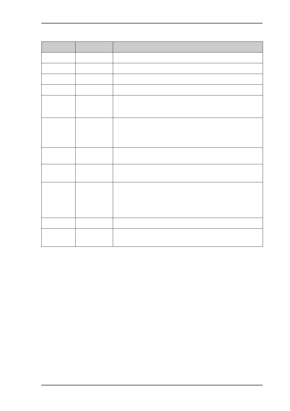 Parameter Values Meaning