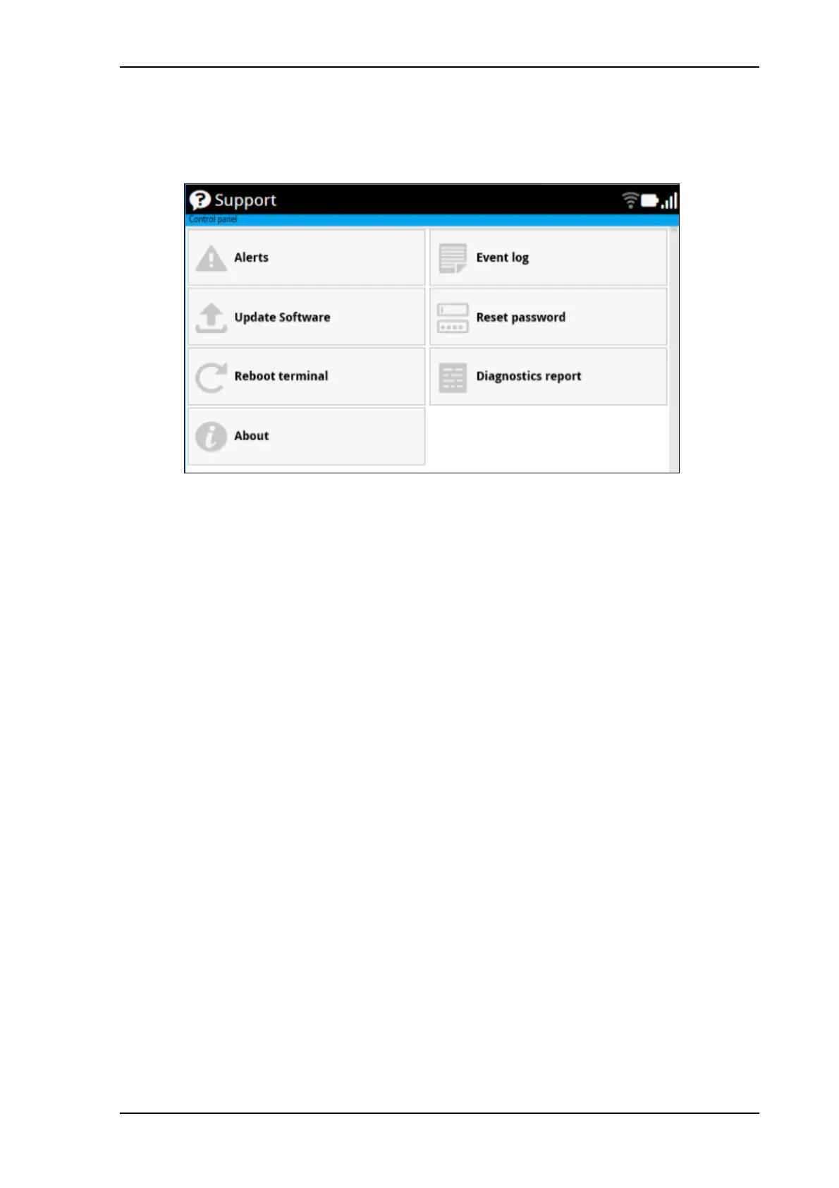 To open the Support page, select (Control panel) > Support.