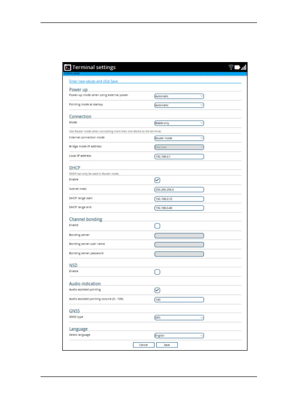 Terminal settings