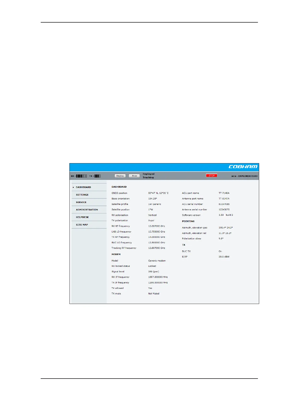 access rights. You can also deploy, stow and stop the antenna, and monitor the system