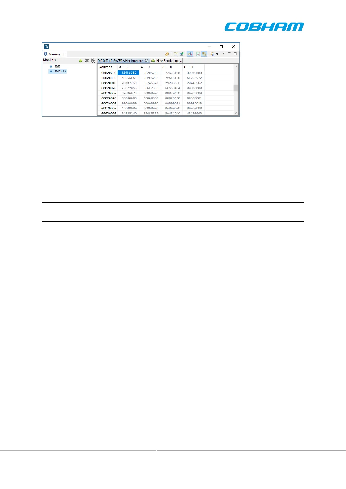 IO registers in raw format. It is possible to specify the memory content presentation, for example ASCII string,
