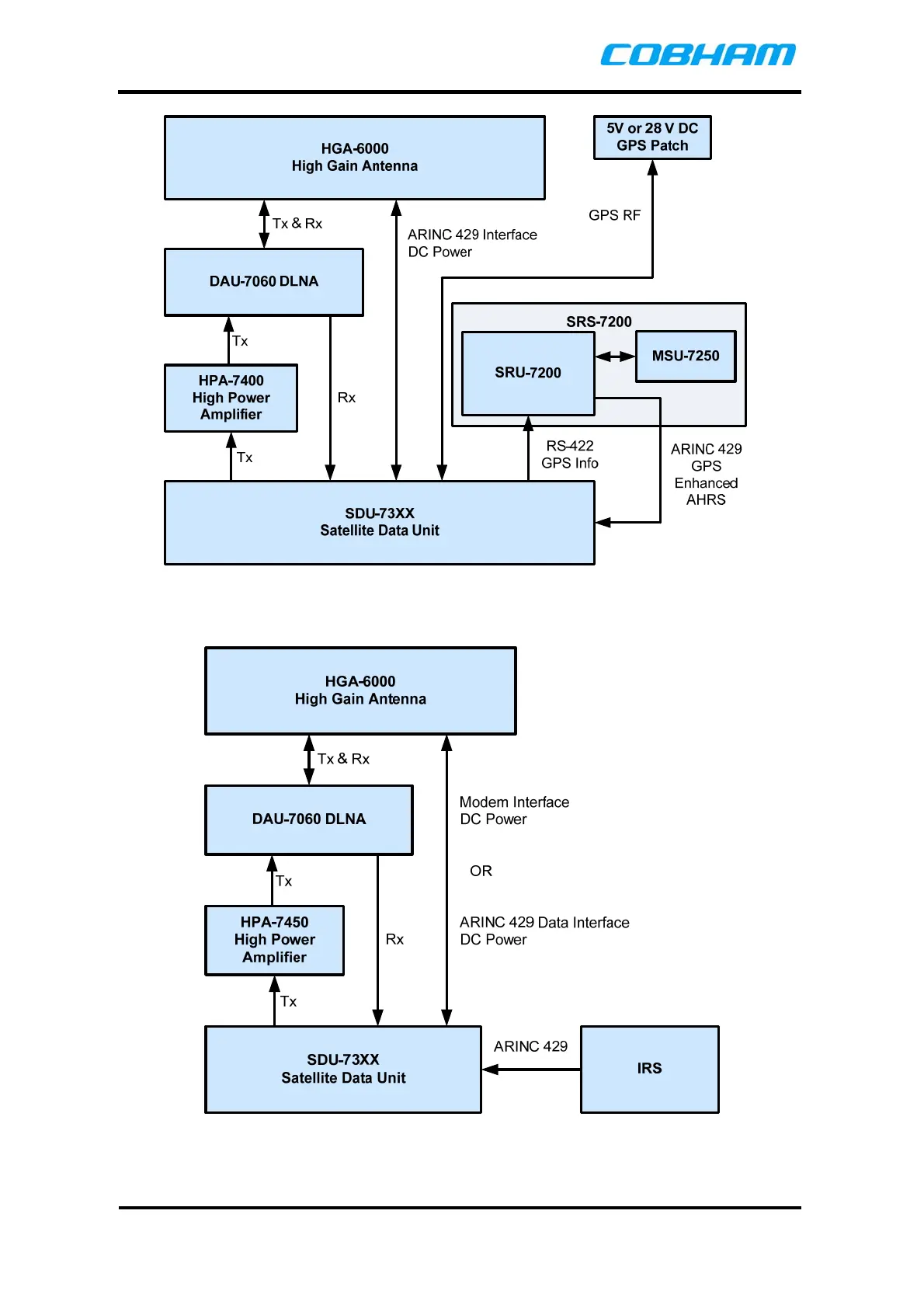 COBHAM HGA-6000 - Figure 9: Cobham Swiftbroadband System Using SRS-7200 AHRS System; Figure 10: Cobham Swiftbroadband System Using IRS System