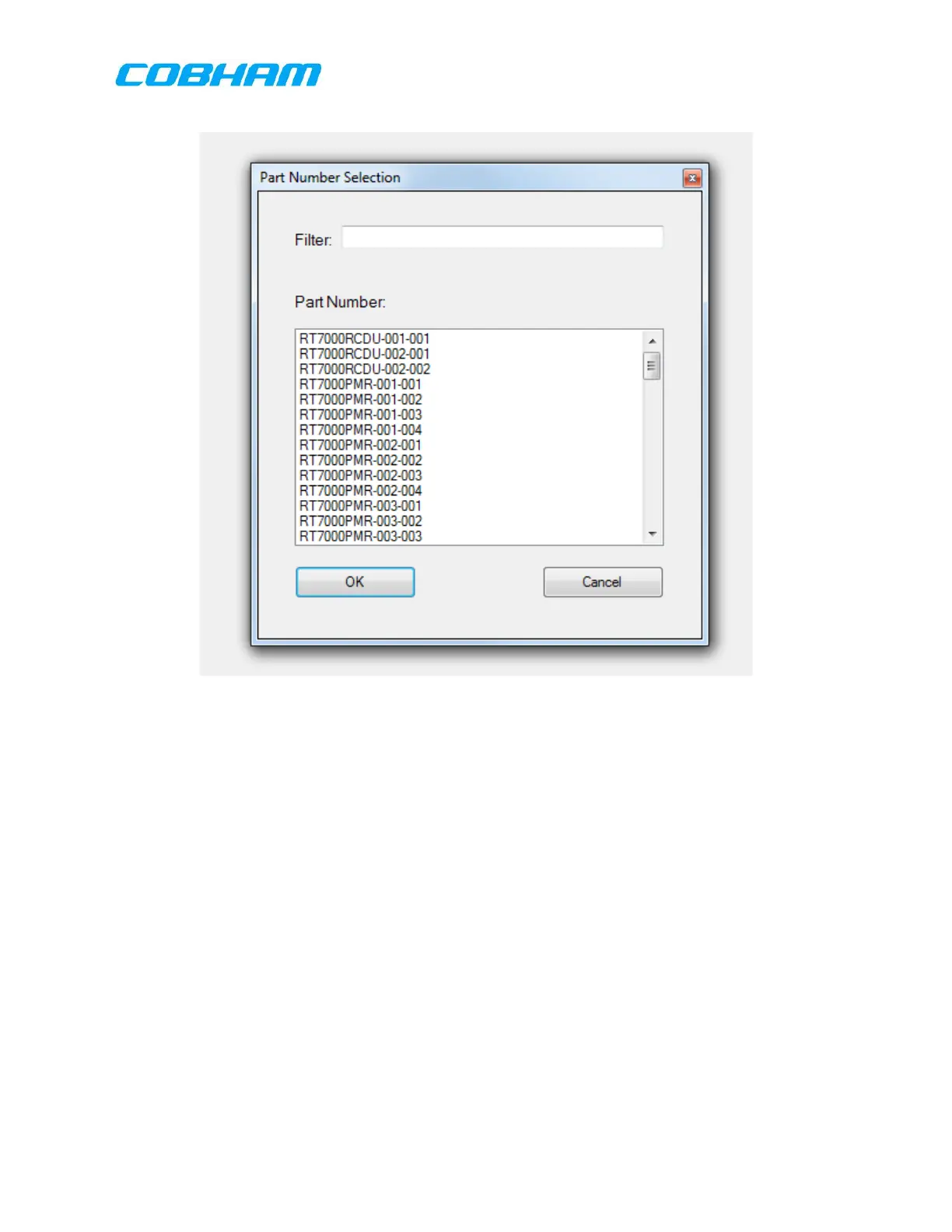 highlighting the appropriate part number and selecting “OK:. The usere may input a