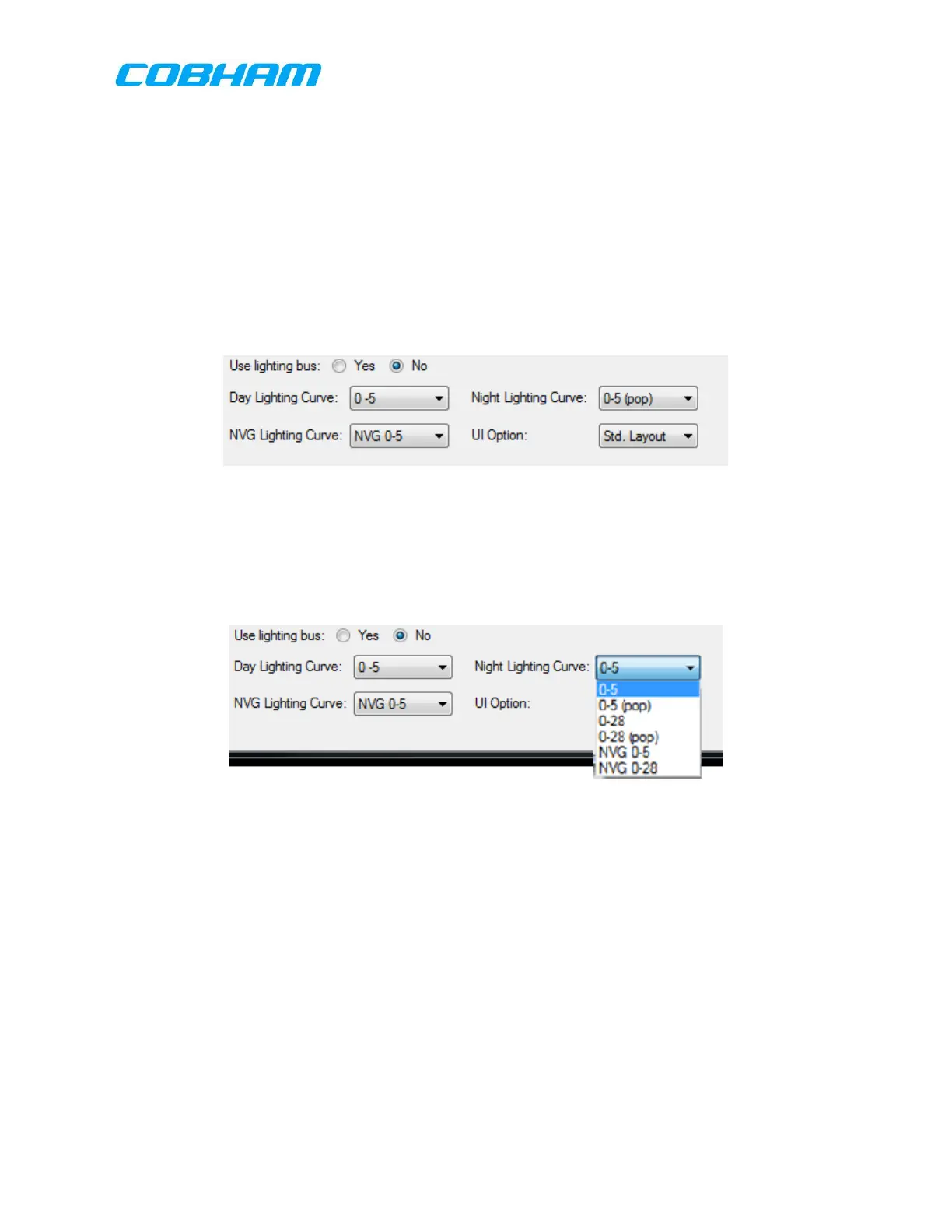 Each of the Day, Night, or NVG lighting curve buttons shows the current selection and