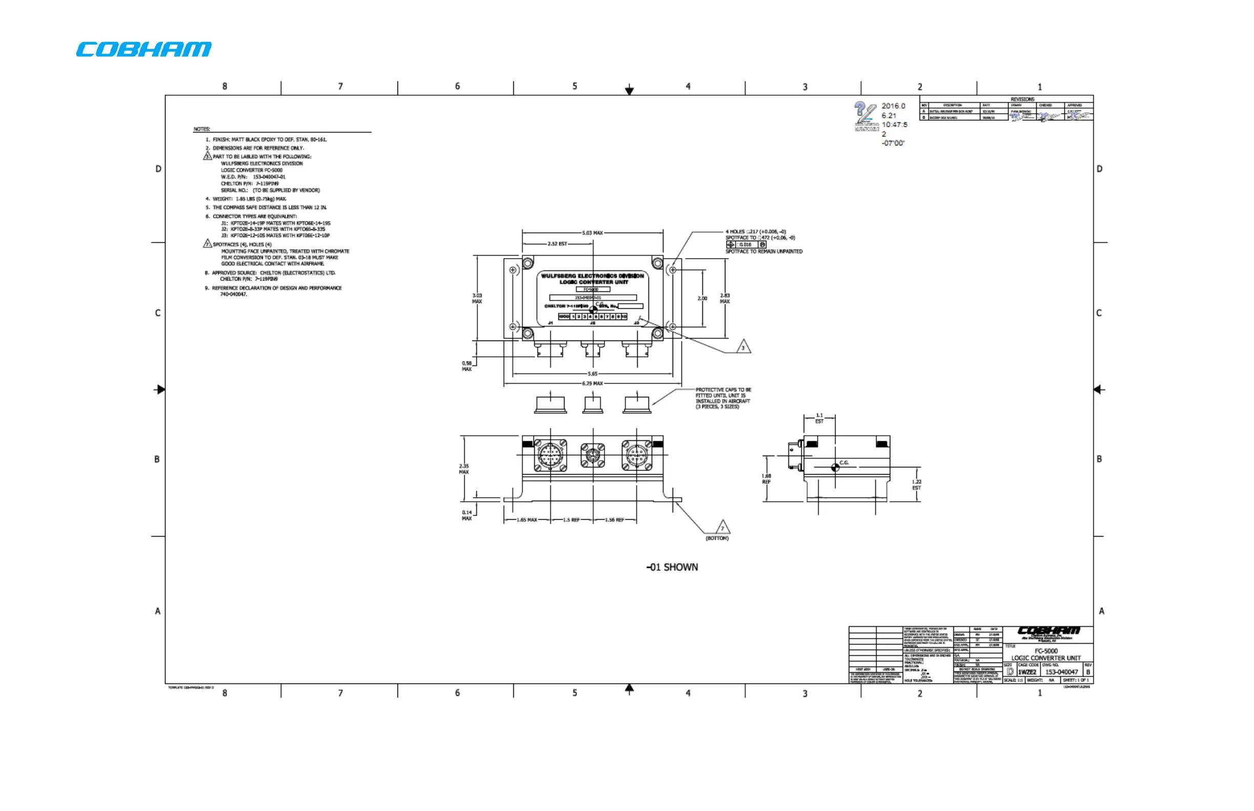 COBHAM RT-7000 RCDU - Figure 6-14: FC-5000 Antenna Tuner Envelope Drawing (Sheet 1 of 1)Dwg No. 153-040047, Rev B)