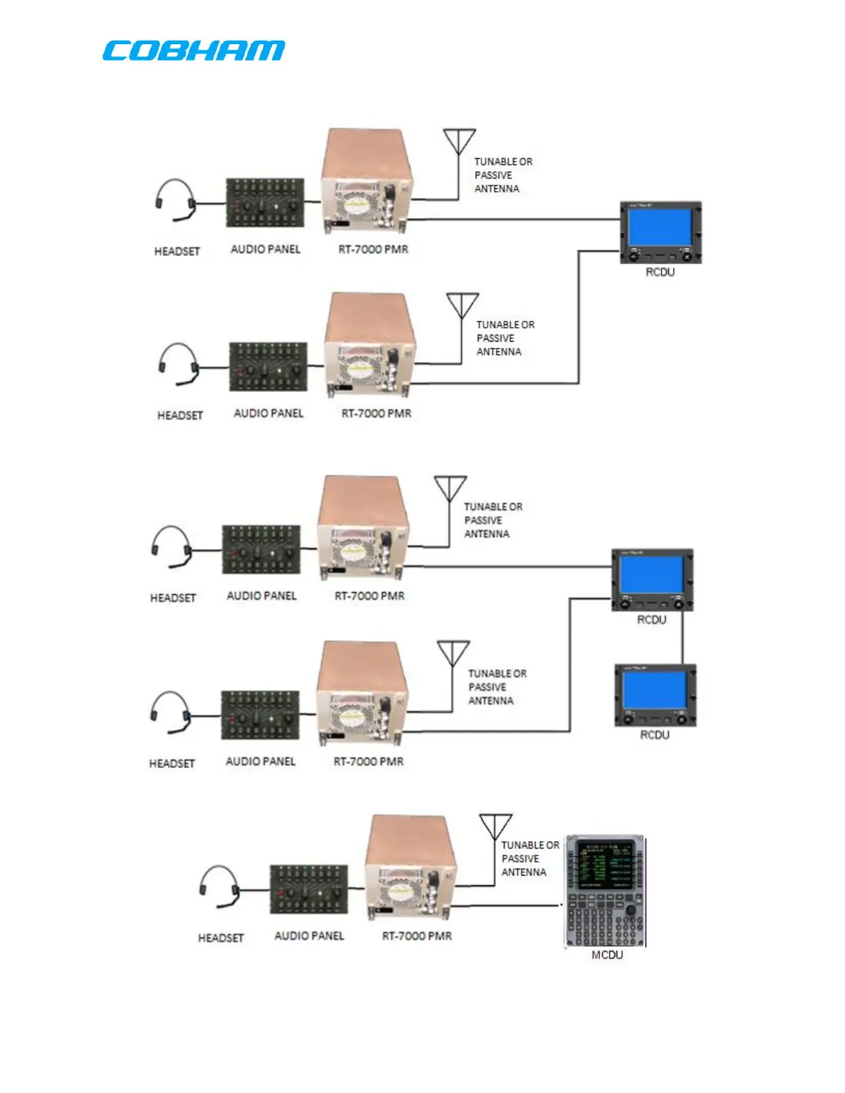COBHAM RT-7000 Series - Figure 5-10: Dual RT-7000 RMR with RCDU; Figure 5-11: Dual RT-7000 RMR with Dual RCDU; Figure 5-12: RT-7000 RMR with MCDU