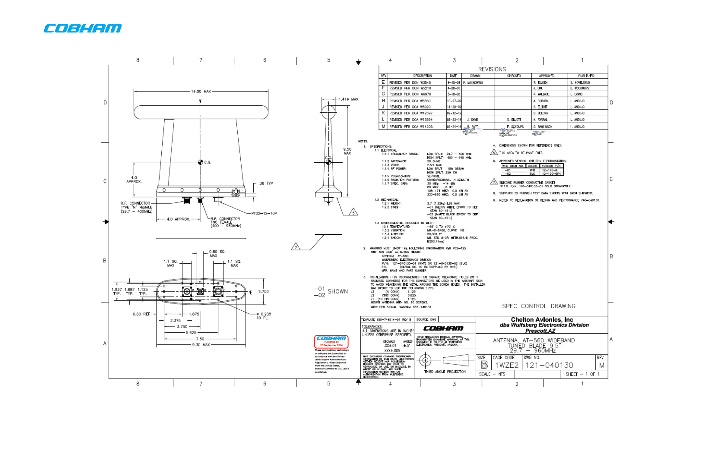 COBHAM RT-7000 Series - Figure 6-6: AT-560 Antenna Envelope Drawing (Sheet 1 of 1) (Dwg No. 121-040130.M, Rev. M)