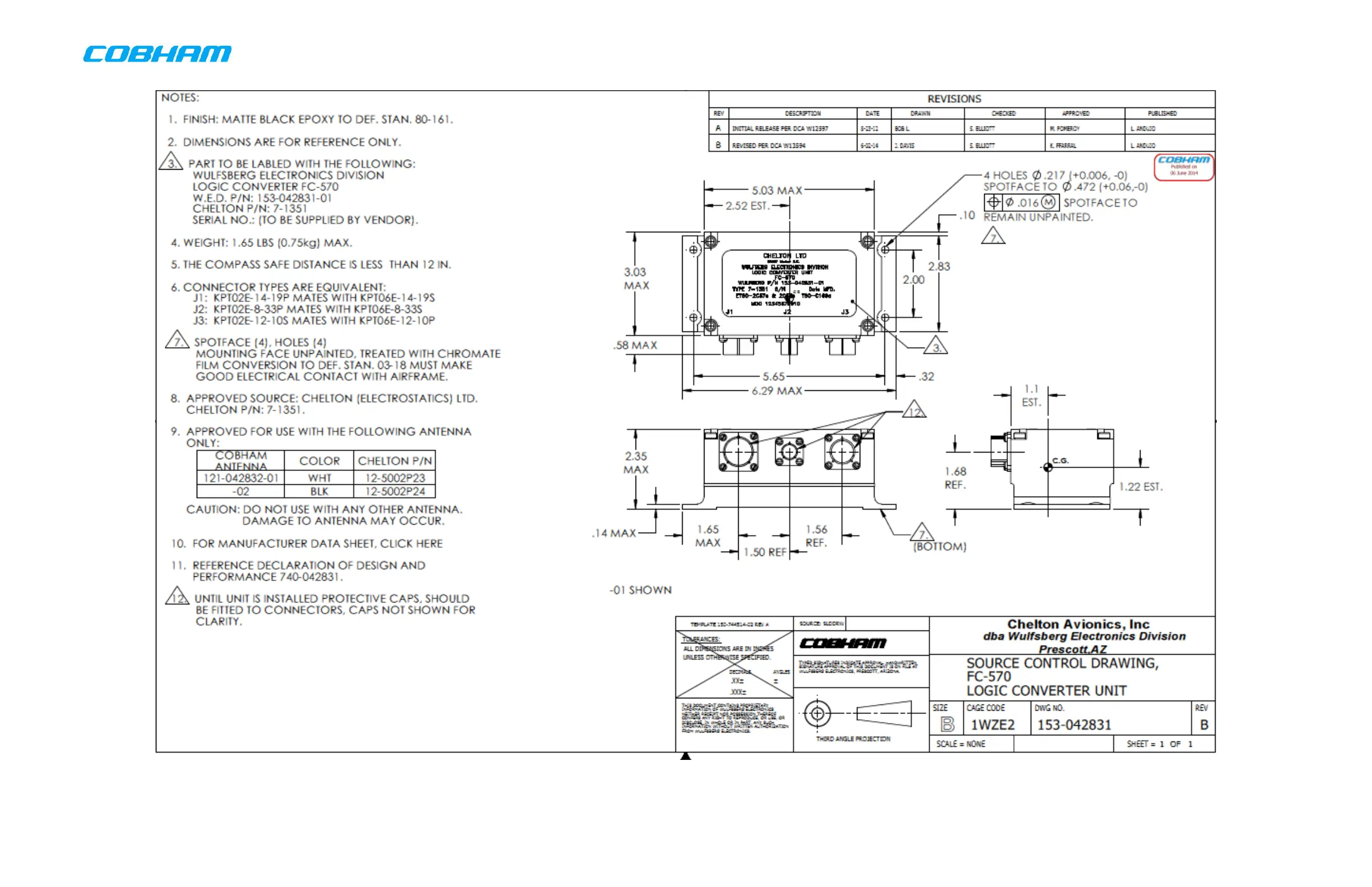 COBHAM RT-7000 Series - Figure 6-15: FC-570 Antenna Tuner Envelope Drawing