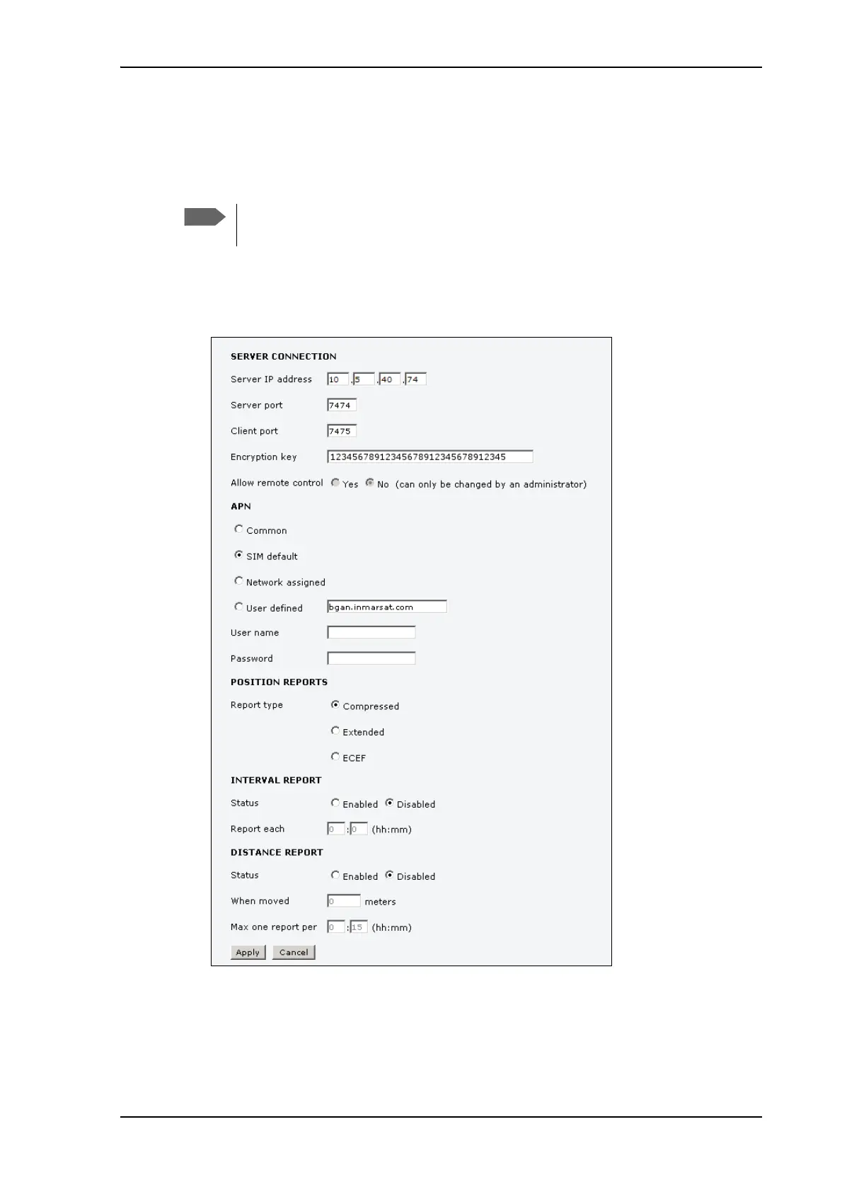 • IP address. The IP address of the server that the SAILOR FleetBroadband terminal will