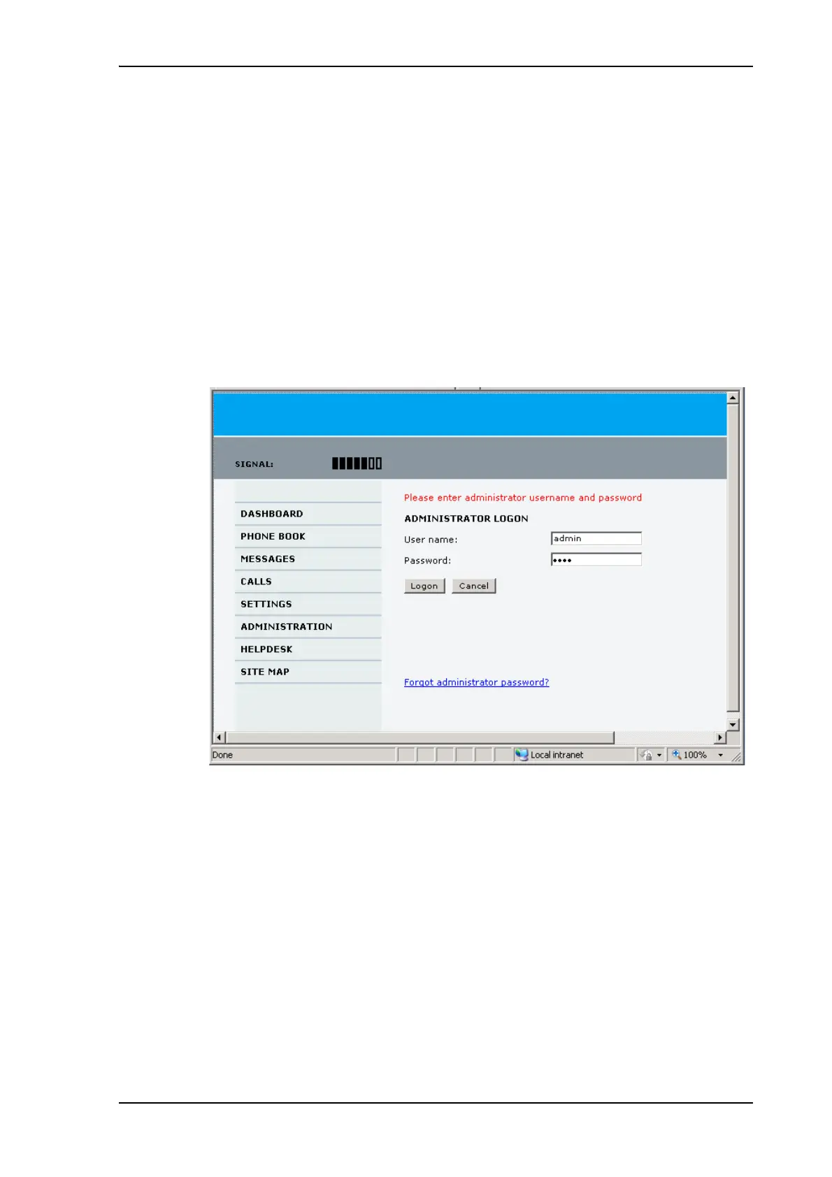 The Administration settings require an Administration user name and password. To log on as