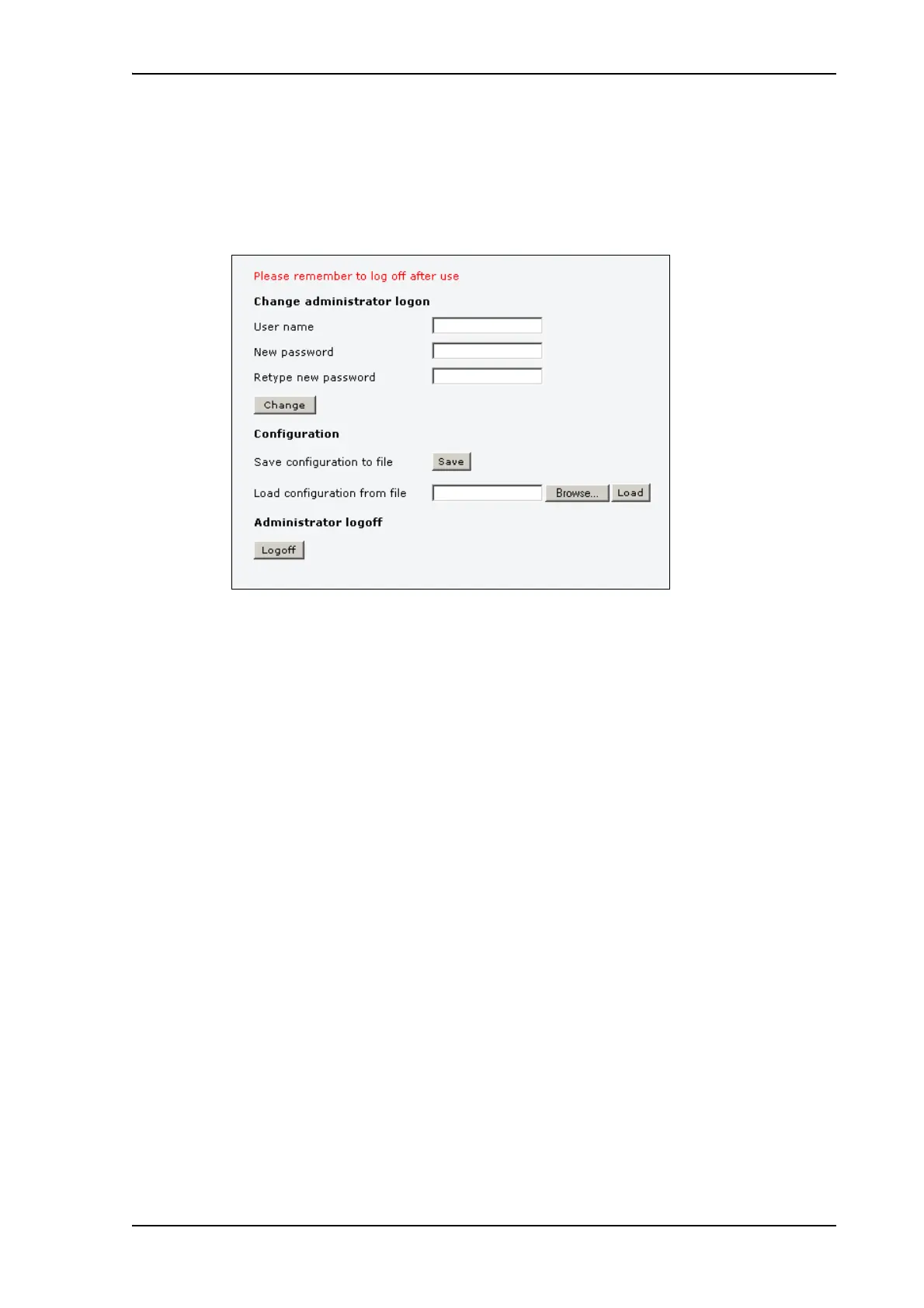 page, locate the section Change administrator logon.