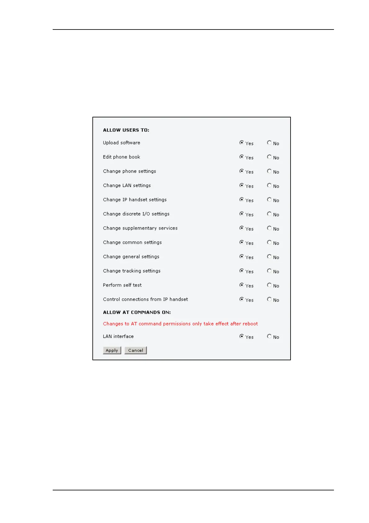• no to block the use of AT commands on the LAN interface.