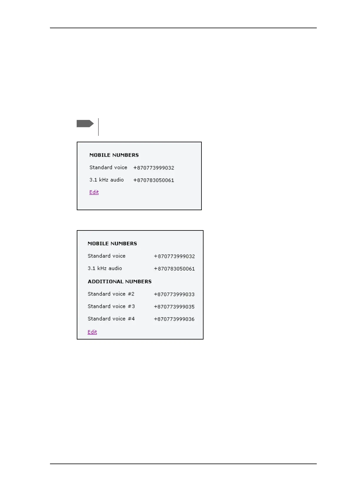 The mobile numbers are the phone numbers to use when making a call to the terminal.