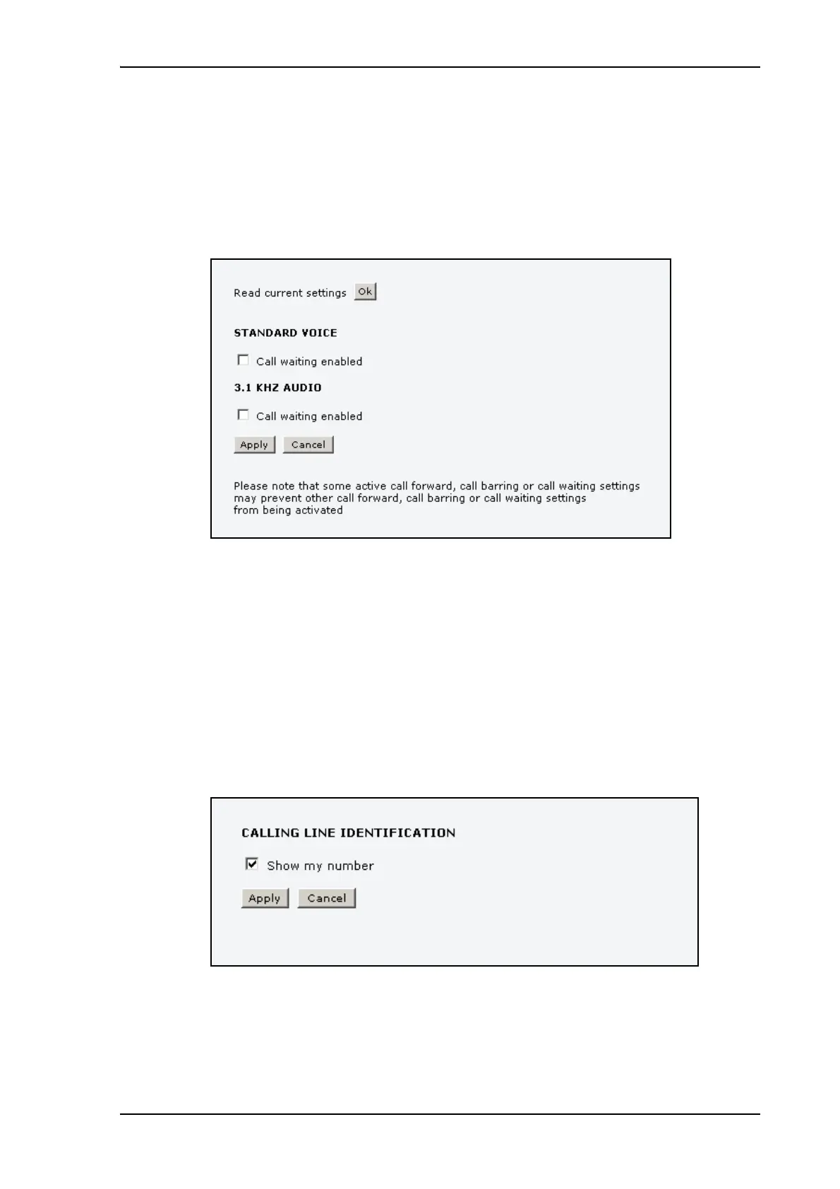 3. For each call type, select Call waiting enabled if you want to get notification of waiting
