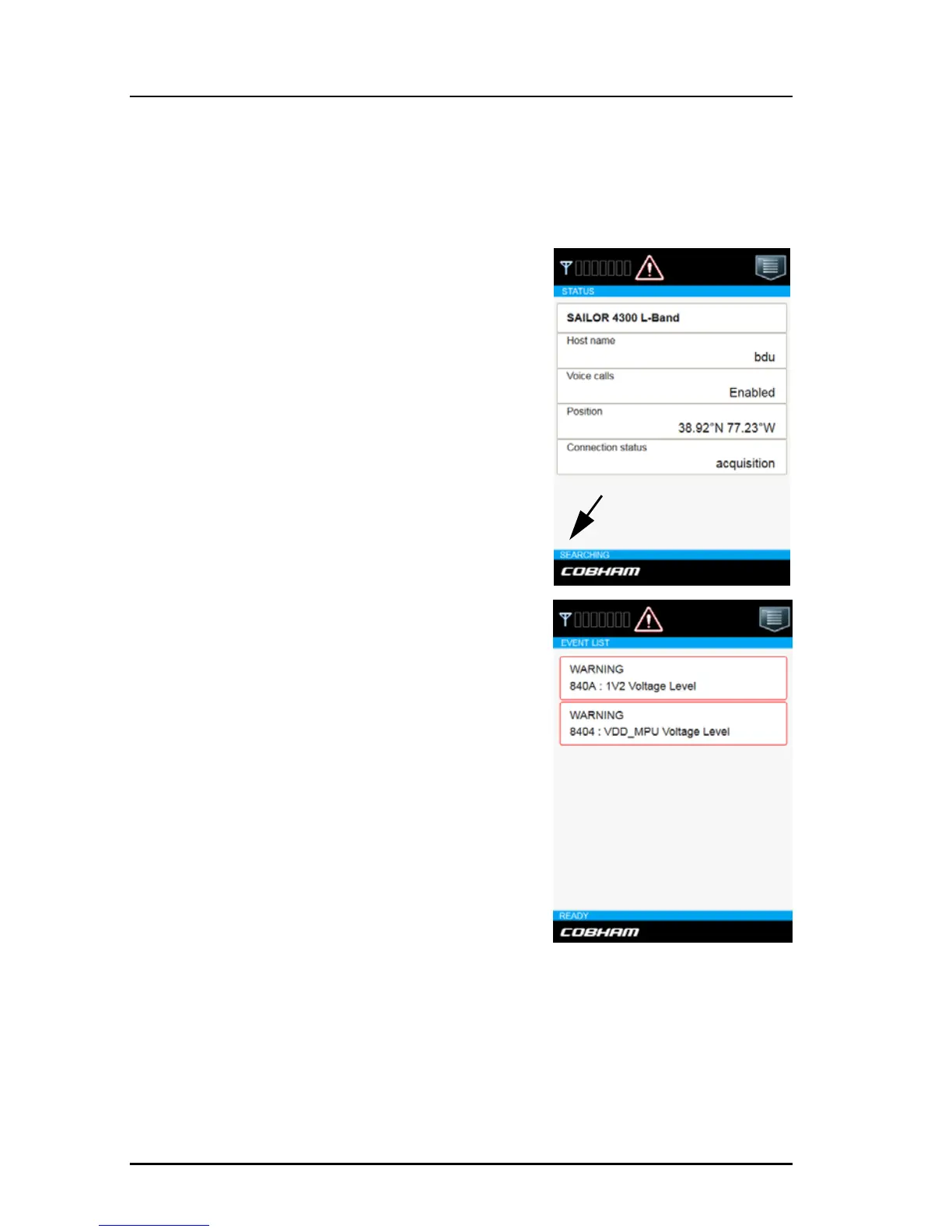 • CONNECTED. The system is registered and connected to the satellite