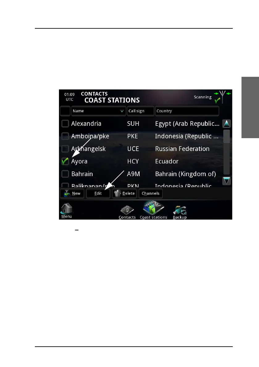 To edit a coast station in the list, do as follows:
