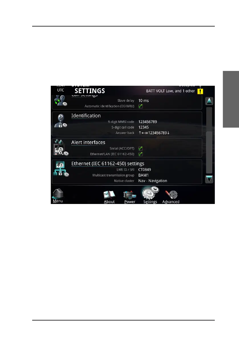 • Ethernet (IEC61612-450) settings. Configure SFI/LWE ID, LWE