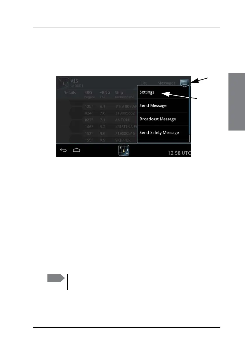 To access the settings of the SAILOR 6282 AIS Transponder tap the menu