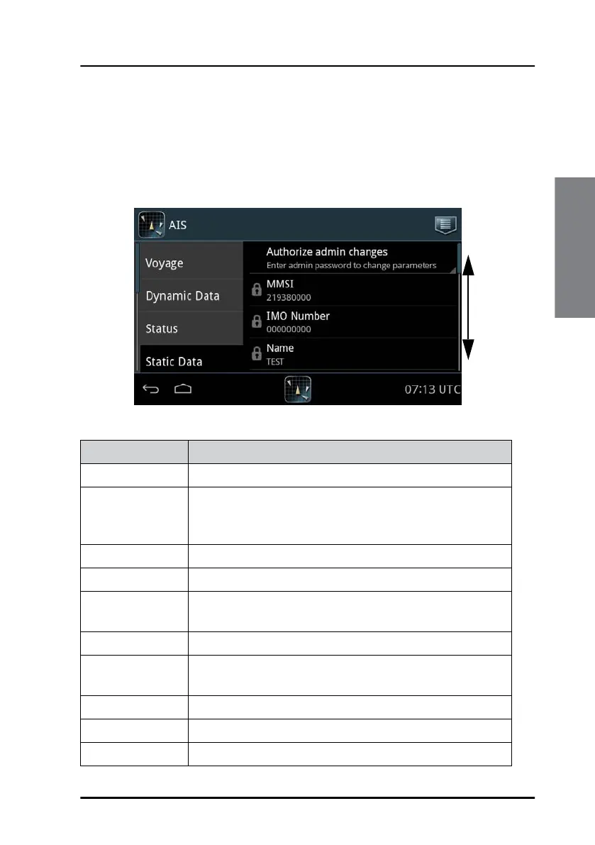 Figure 17: Settings – Static data (read only)