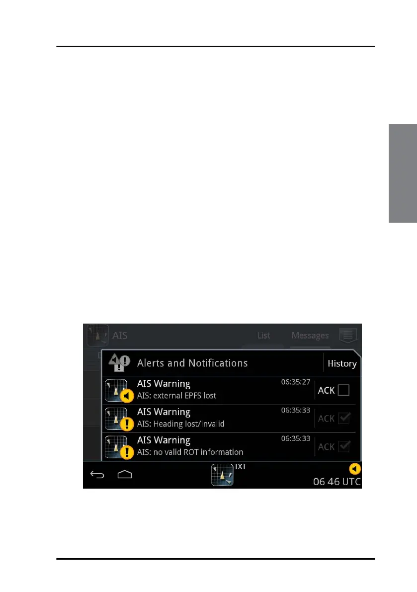 entries).The alert history is cleared when you switch off the SAILOR 6004