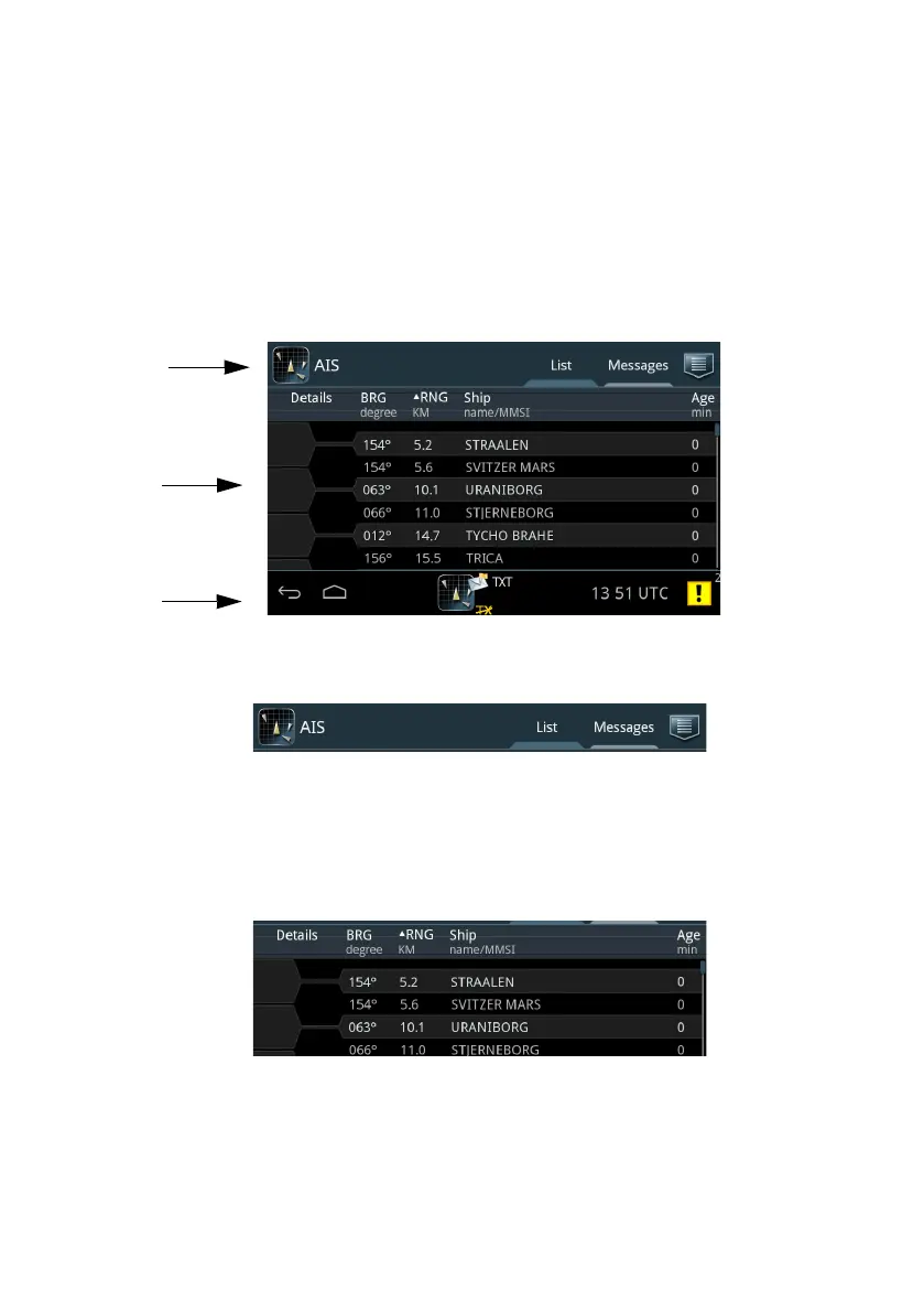 2. AIS app-specific area (List tab selected. For Messages tab, see To work with