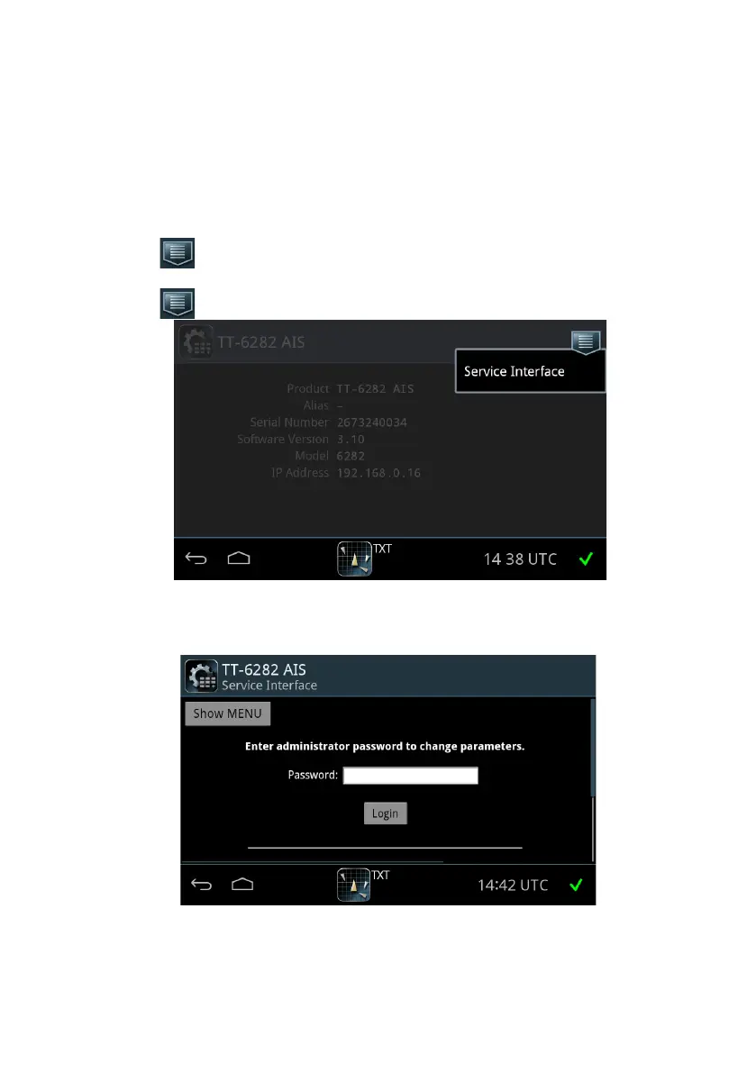 6. Enter the administrator password for your AIS Transponder and tap Login.