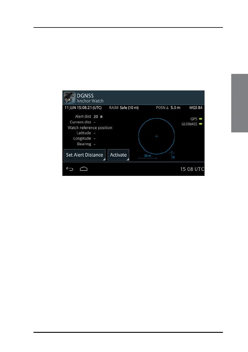 Tap the button Activate to activate the anchor watch.
