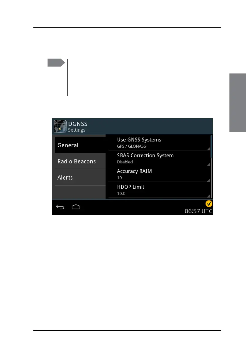 The GNSS/DGNSS Receiver has several sets of settings: General, Radio