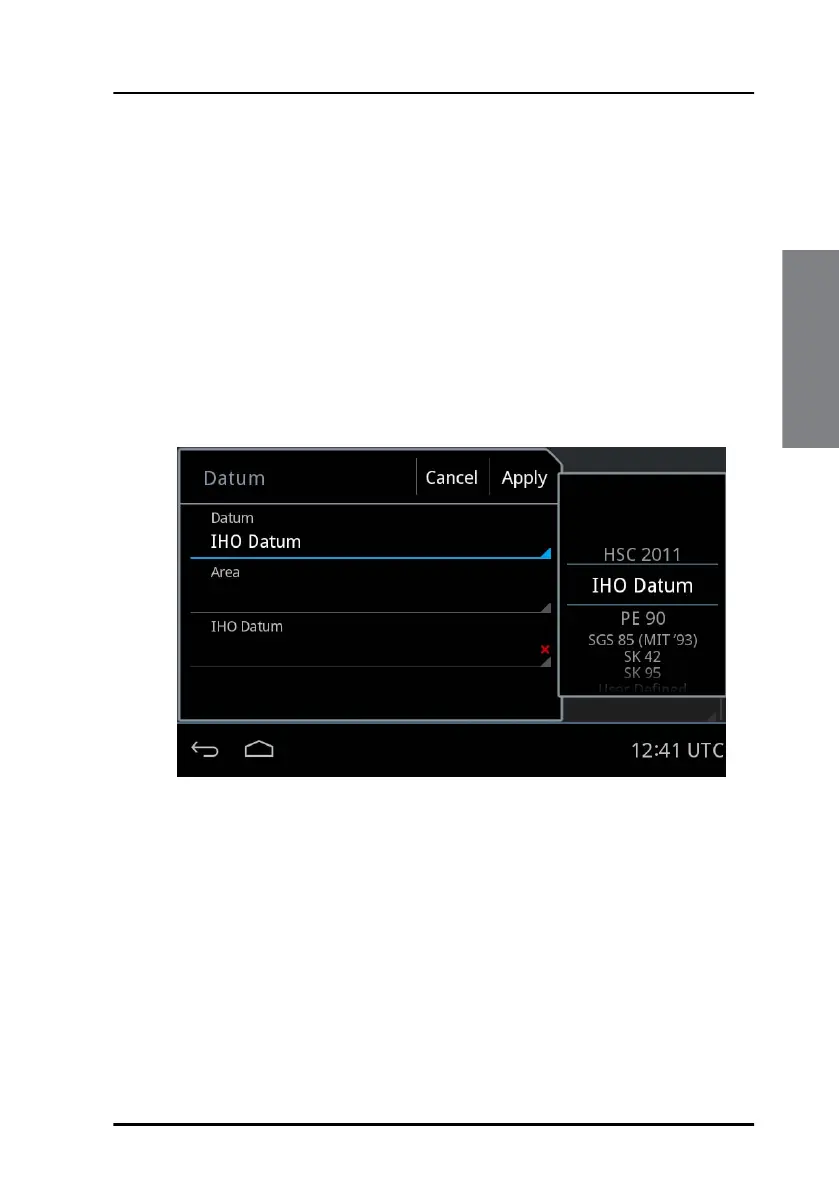 3. Swipe to select IHO Datum in the list on the right side of the screen.