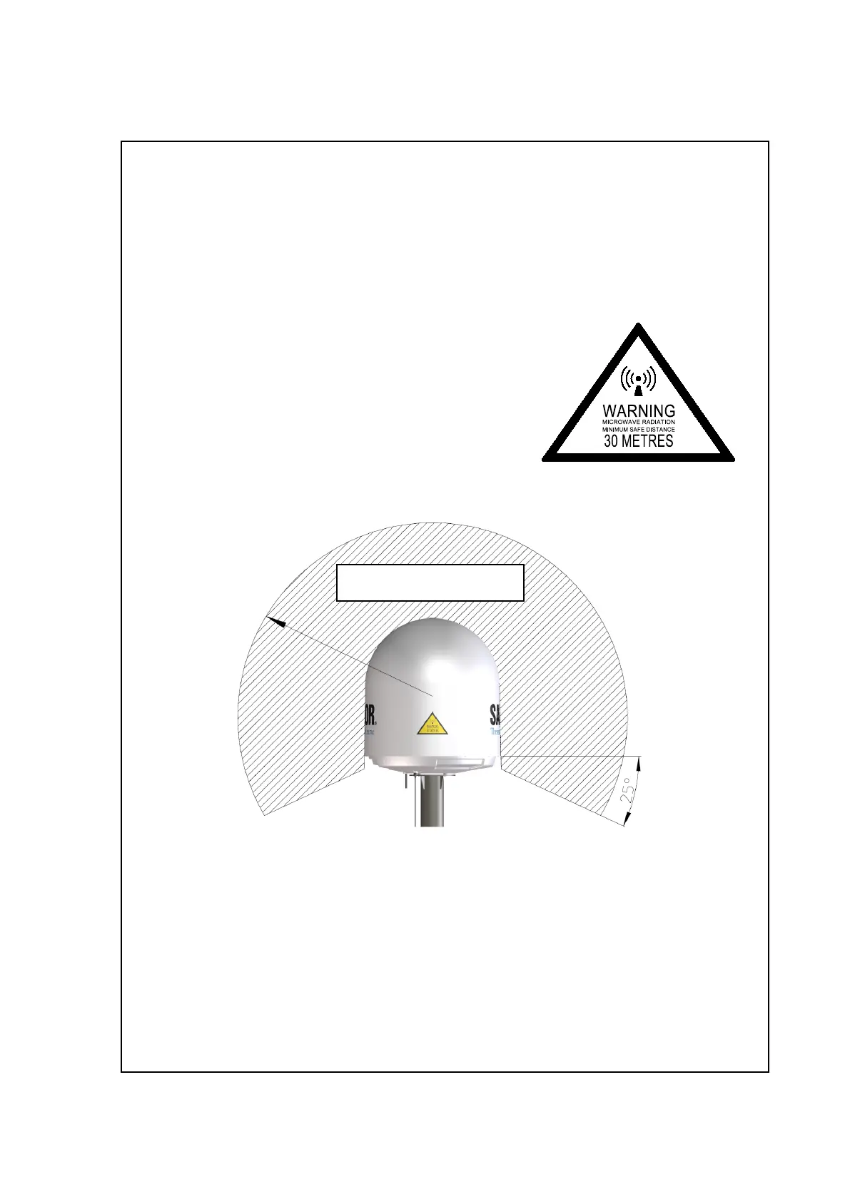 . No hazard exists >25° below the Above Deck Unit’s mounting plane. Refer to the