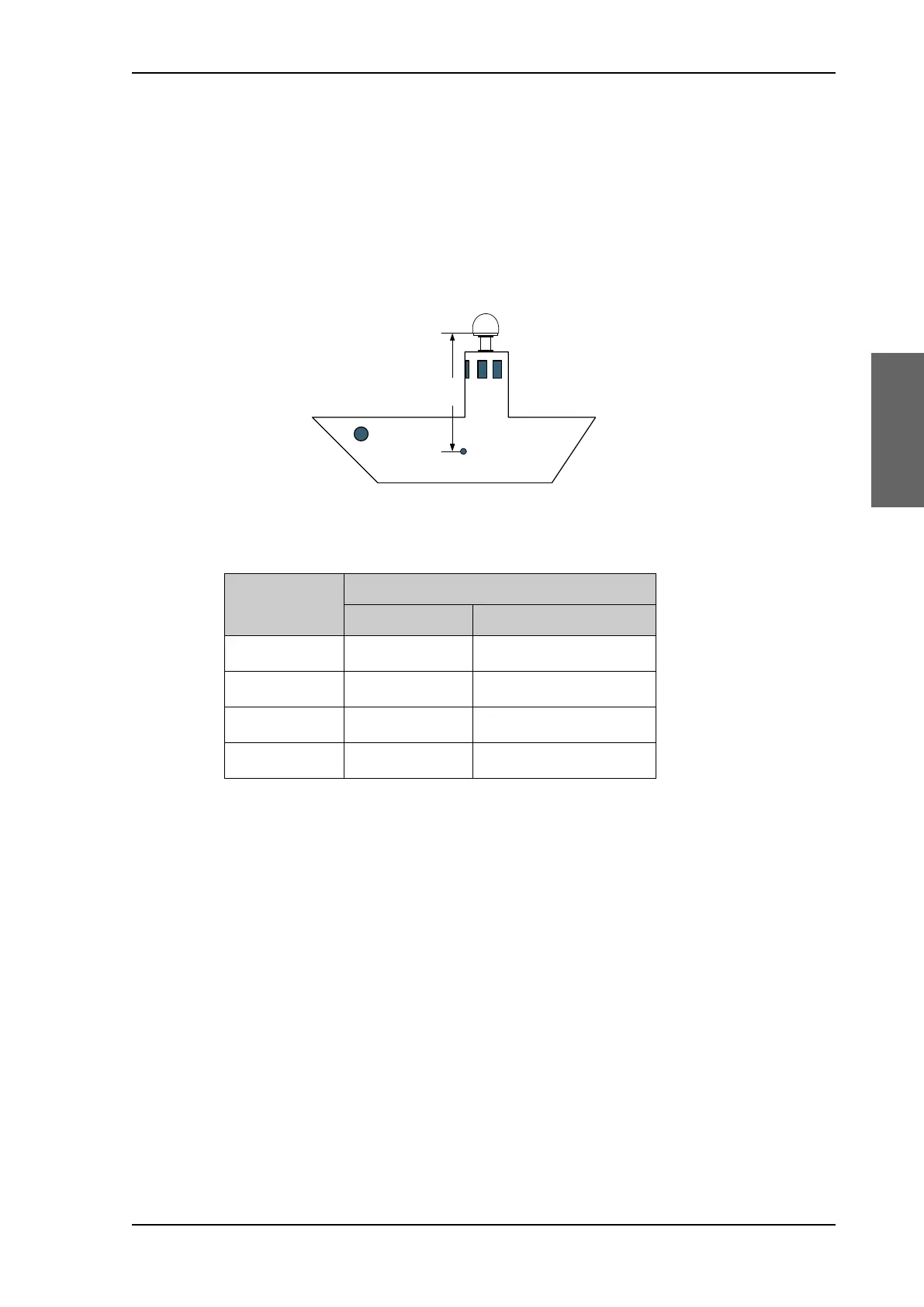 following table for allowed mounting heights above the ship’s motion centre.