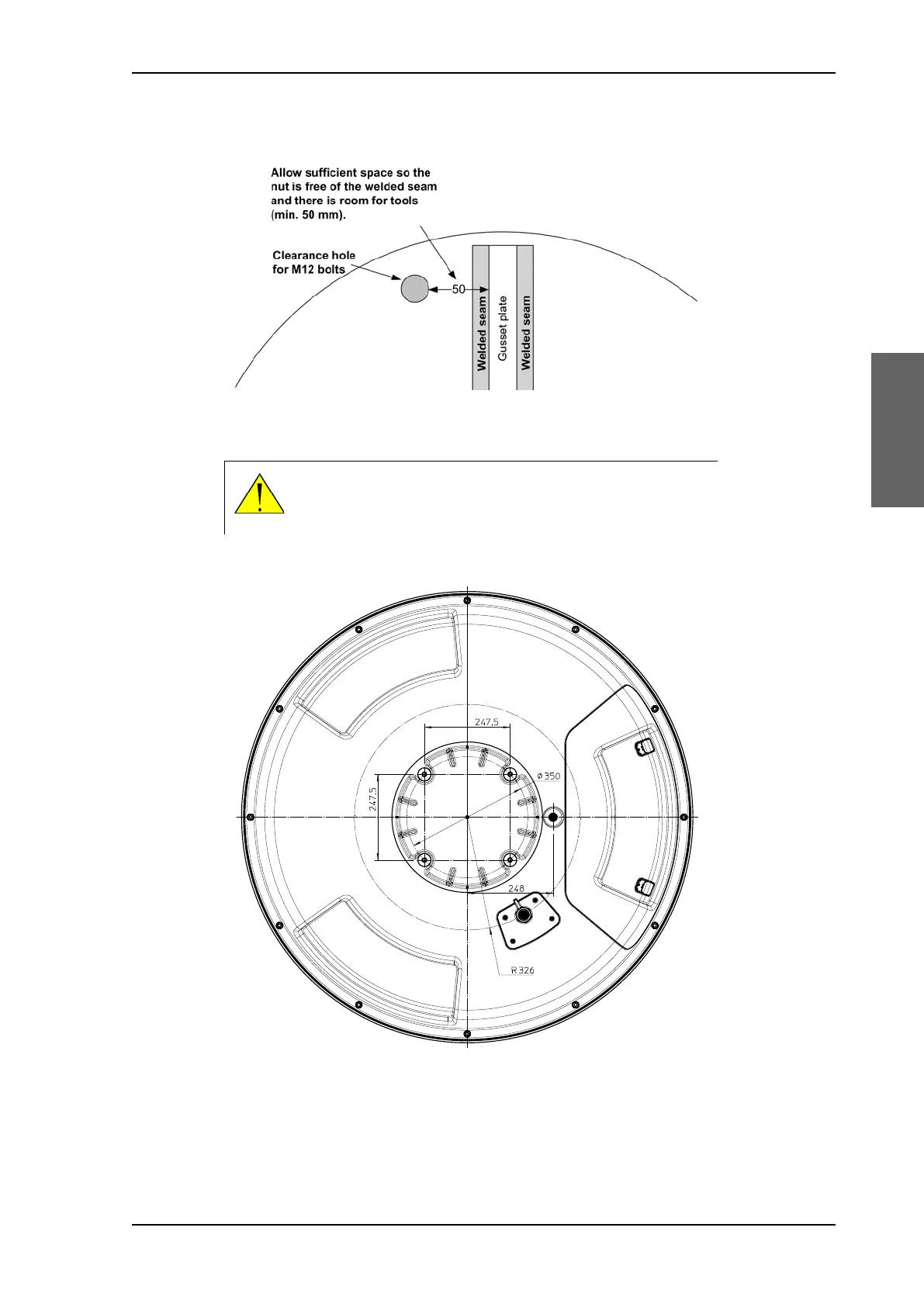 Figure 3-8: ADU mast flange, distance to the welded seam