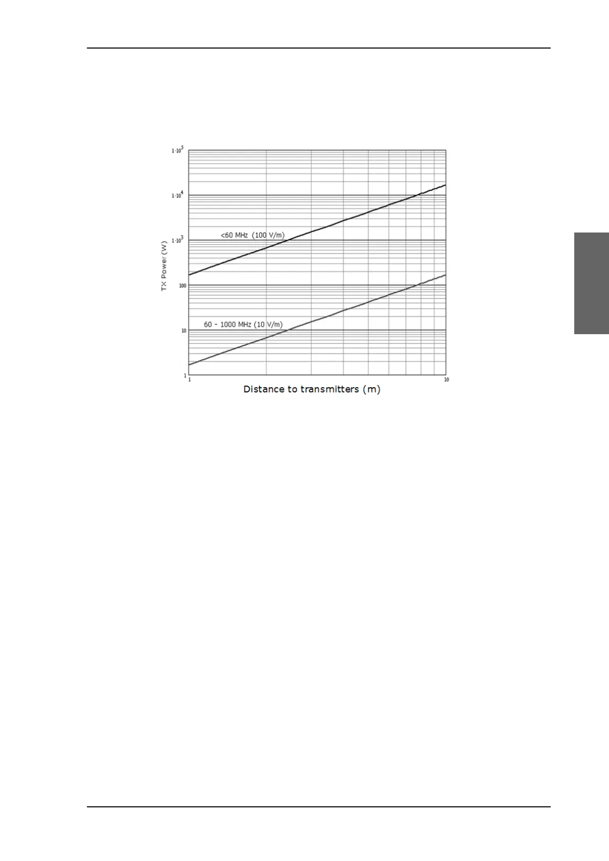 Figure 3-12: Recommended distance to transmitters (m) for frequencies below