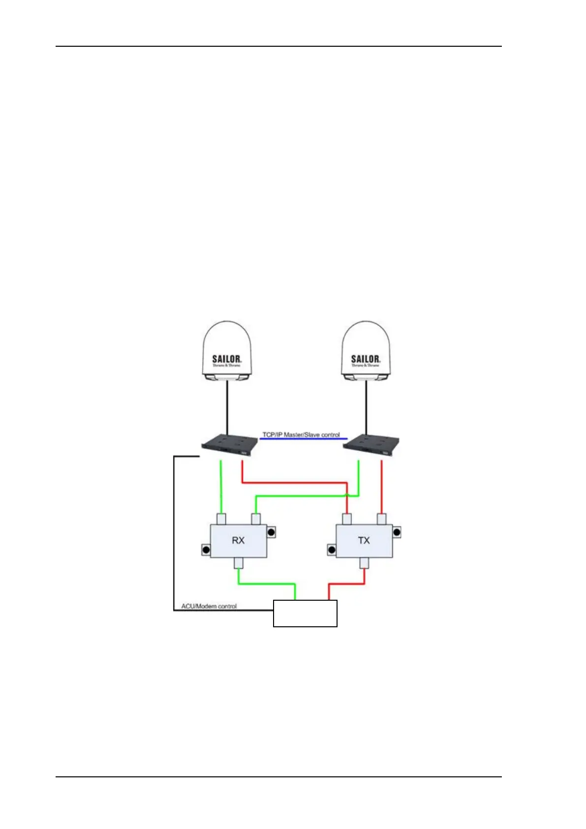 1. Install the master ADU, ACU, the RX combiner and the VSAT modem as shown in figure