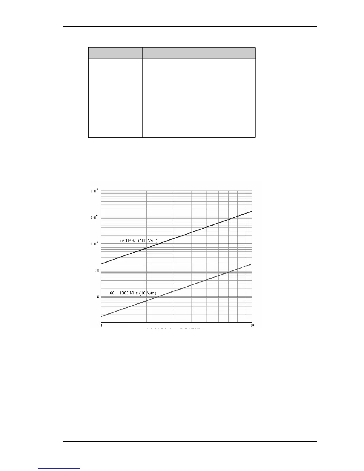 The table below shows the minimum recommended distance to transmitters in the frequency