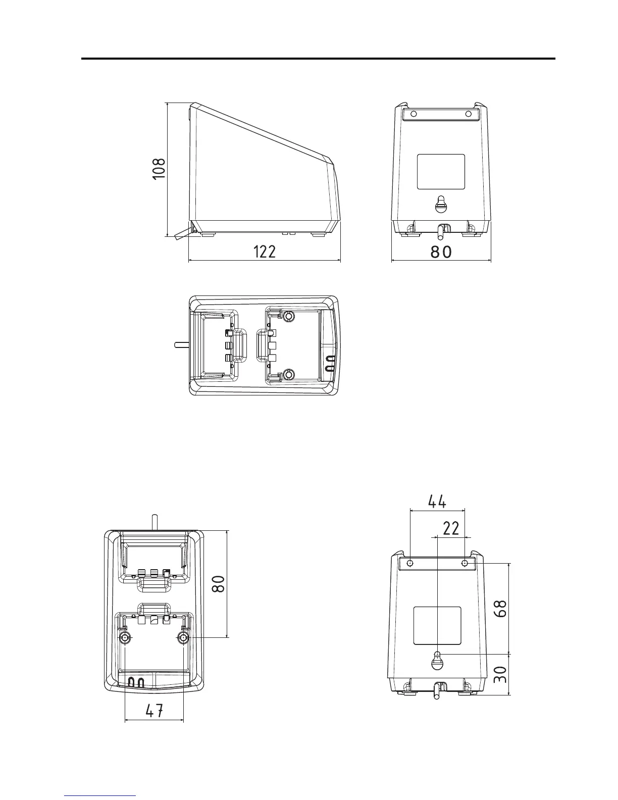 Desktop mounting, top view Wall mounting, rear view
