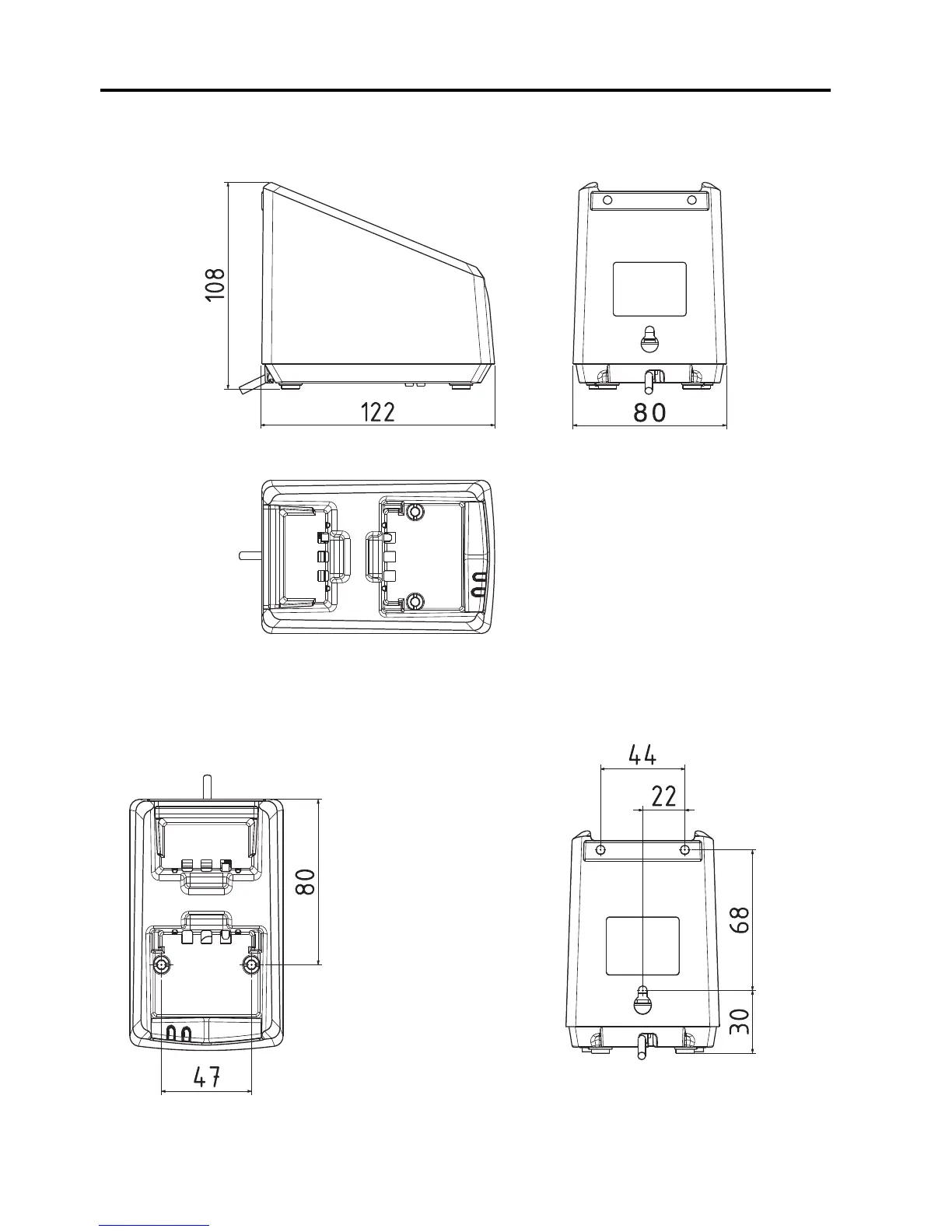 Desktop mounting, top view Wall mounting, rear view