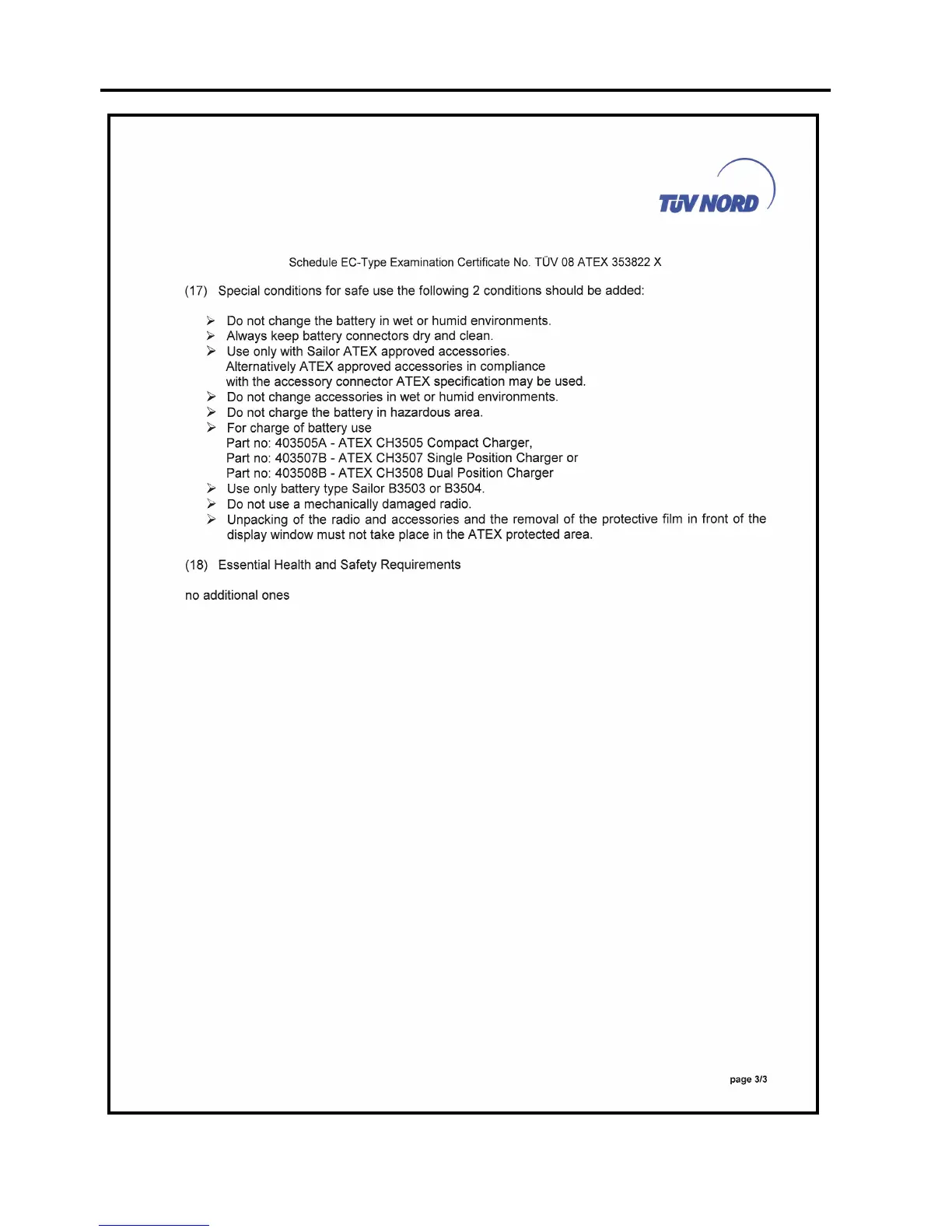 COBHAM SAILOR SP3540 - Safe Use Conditions
